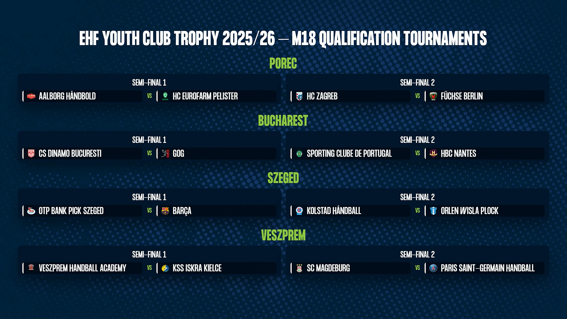Megtörtént a sorsolás, íme az EHF Youth Club Trophy veszprémi selejtező tornájának párosításai.