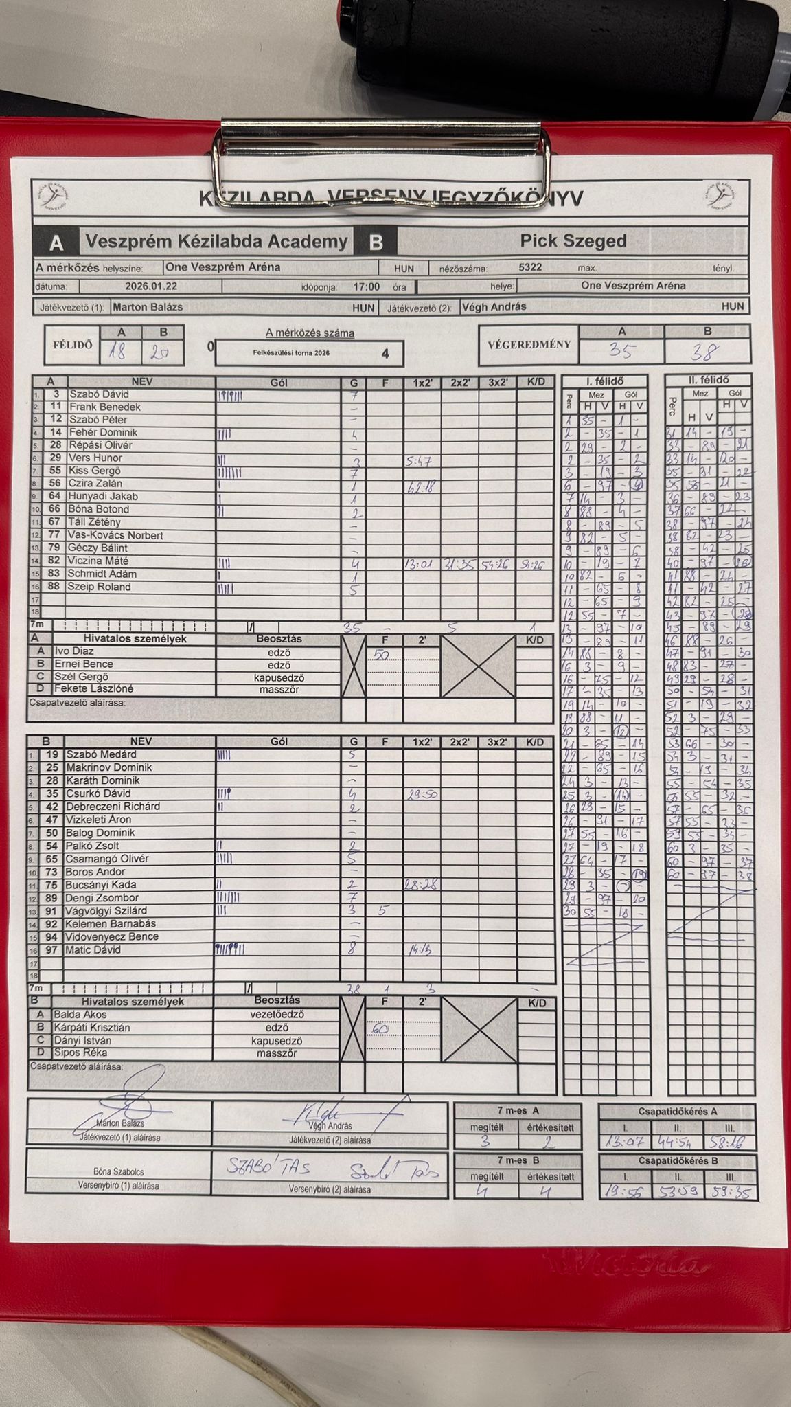 Játékvezetők:Marton Balázs, Végh András