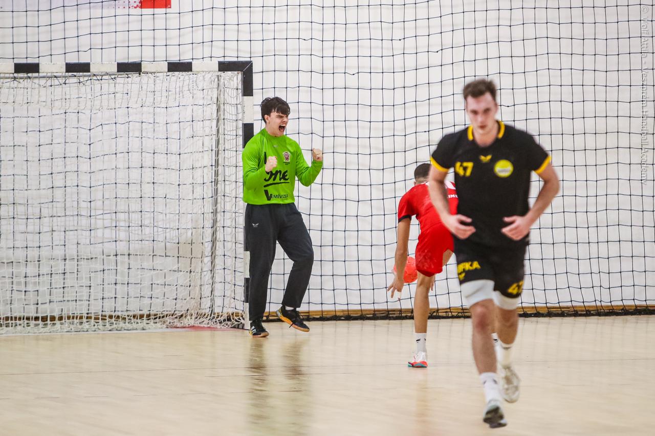 Jó ütemben kezdte a Balatonfüred elleni találkozót U20 csapatunk, a kapuban Bai fogott hetest és ziccereket, a túloldalon pedig elsősorban szélről vettük be az ellenfél kapuját, kiállítást követően pedig üres kapus gólokra is lehetőségünk nyílt. A Füred sem volt rest ez idő alatt, hiszen folyamatosan tartották a lépést növendékeinkkel, az utolsó percekben 4-0-s szériával zárkóztak fel 2 gólra. A 30. percben Török Lajos időt kért, ekkor 13-11-et mutatott az eredményjelző, de eladott labdából Szabadi Anthony indulhatott meg, találatával a félidei 14-11-es eredményt állította be.